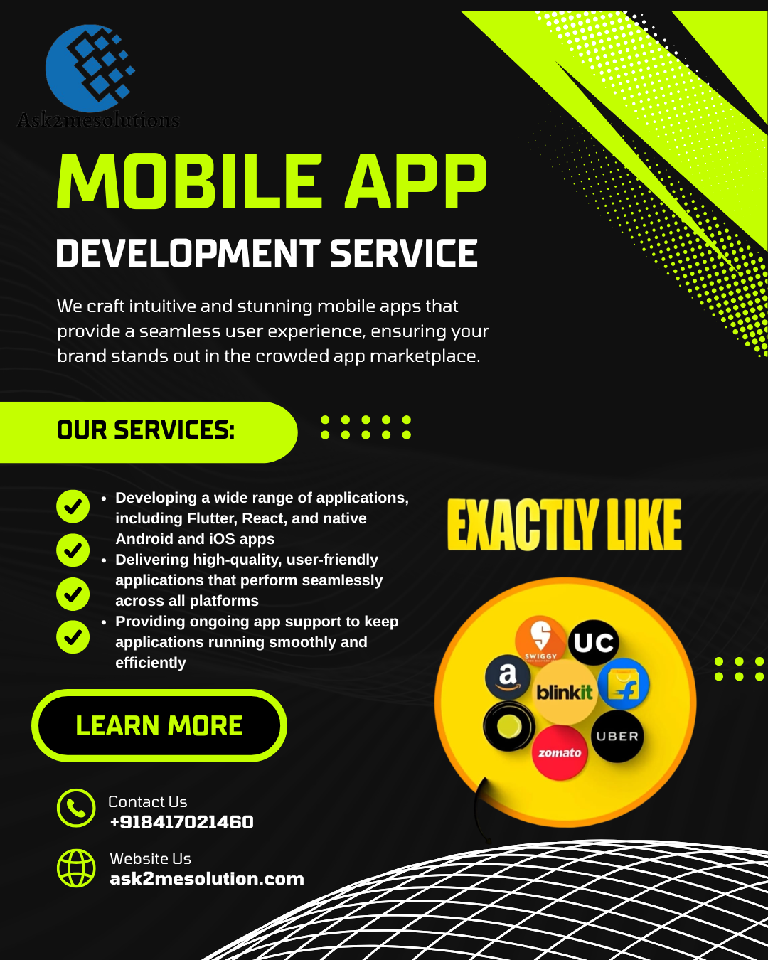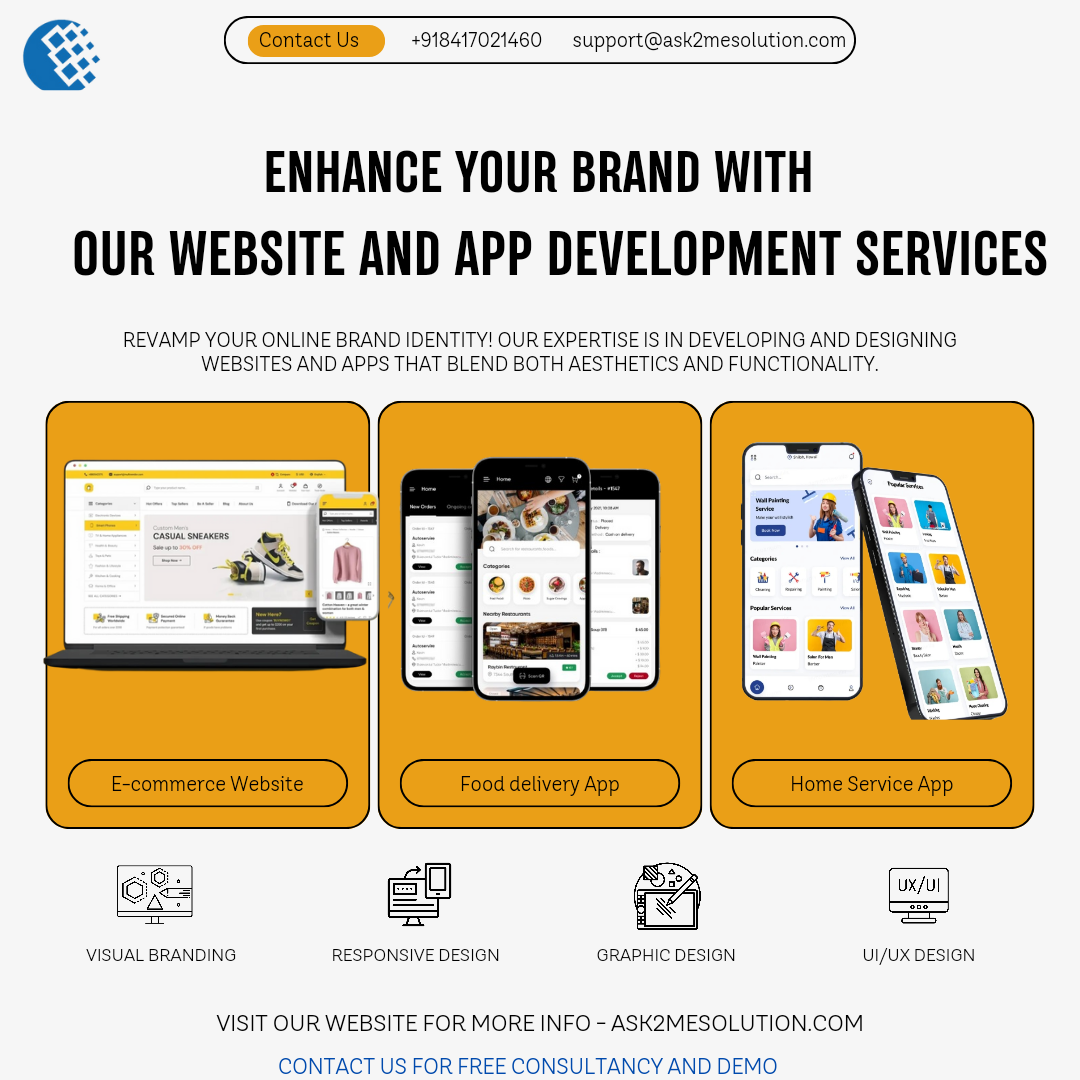 We design & develop Websites, Mobile Apps, Enterprise Software (ERP, CRM, HRM), E-commerce Platforms, Delivery Apps, Blockchain Solutions, AI Tools, and Digital Marketing Services—all under one roof!💡 Let’s turn your idea into reality